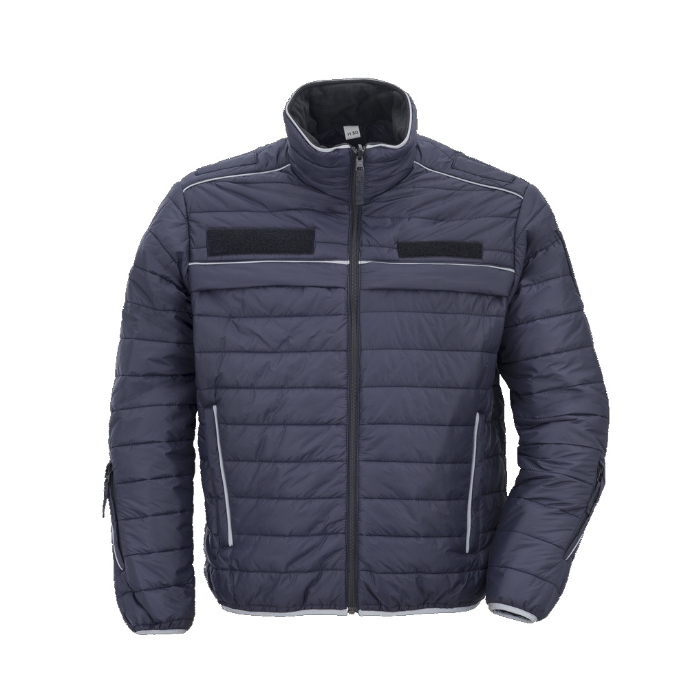 Wärmende Isolationsjacke mit elastischen, reflektierenden Ärmel- und Bundabschlüssen.