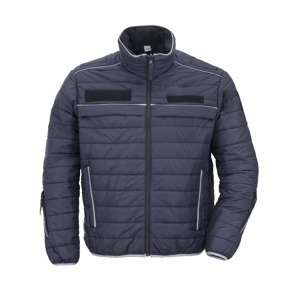 Wärmende Isolationsjacke mit elastischen, reflektierenden Ärmel- und Bundabschlüssen.