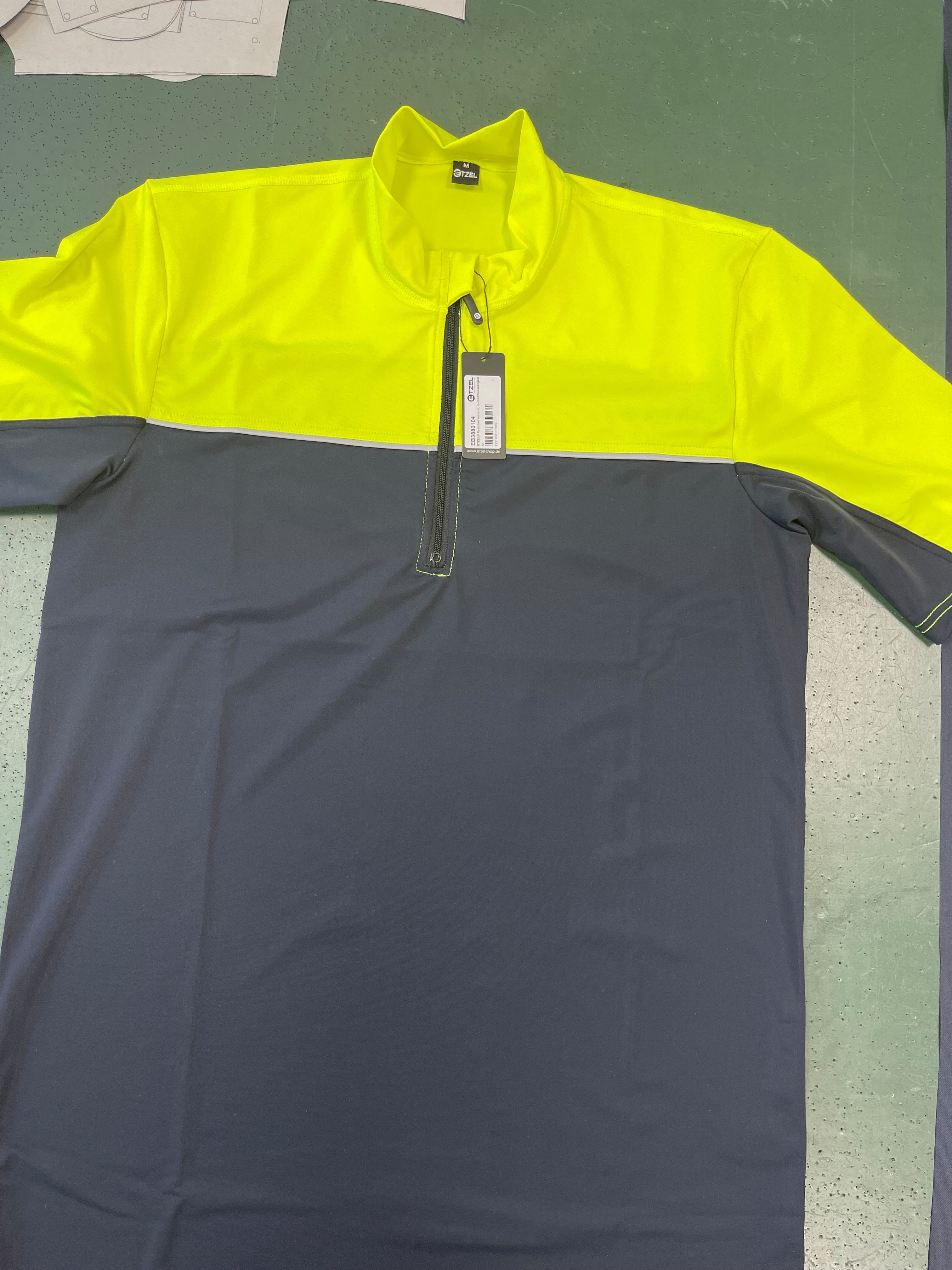 *Anders als bei unseren regulären Radtrikots sind hier der Rumpf deutlicher länger, der Reißverschluss reicht über die Reflexbiese.