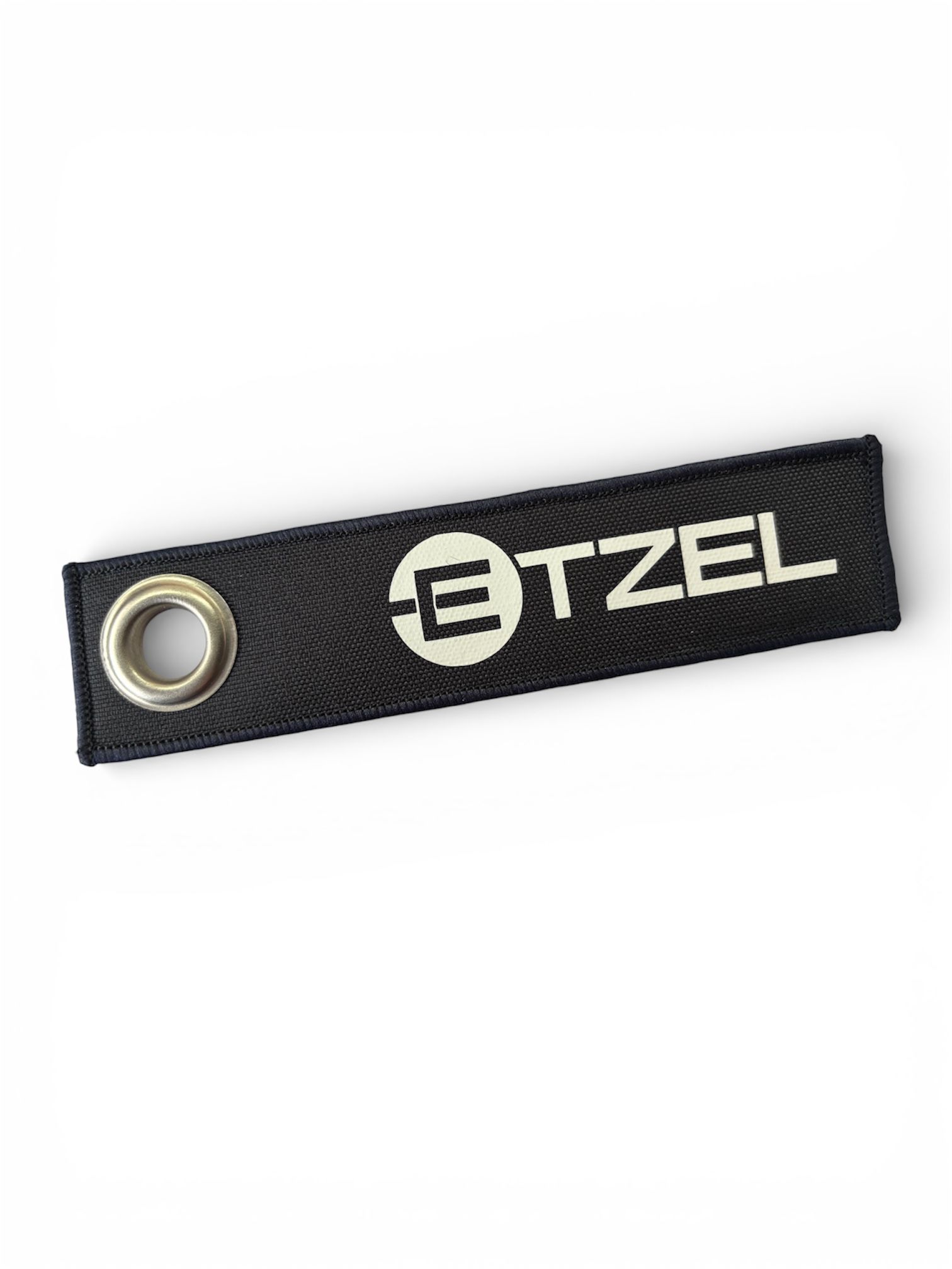 Schlüsselanhänger aus Cordura mit umkettelten Rand und großer Öse.
