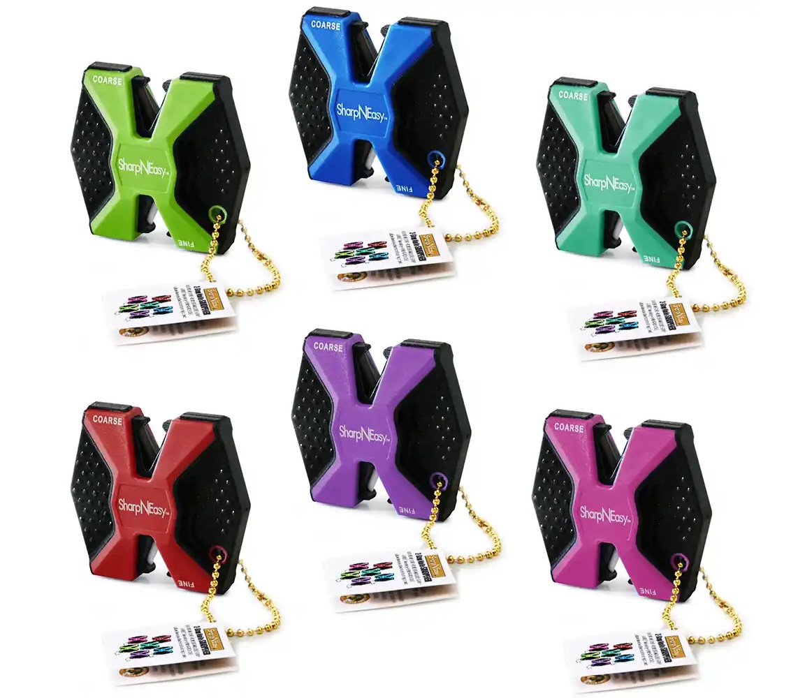 Der AccuSharp® SharpN'Easy® liegt mit seinem rutschfesten, gummierten Griff sicher und angenehm in der Hand. Durch das geringe Gewicht lässt sich der Schärfer mühelos transportieren und passt in jede Jagd- oder Outdoortasche. Eine integrierte Öse ermöglicht die Befestigung an einer Schnur oder einem Karabiner – perfekt für Werkzeugtasche, Gürtel oder Rucksack.