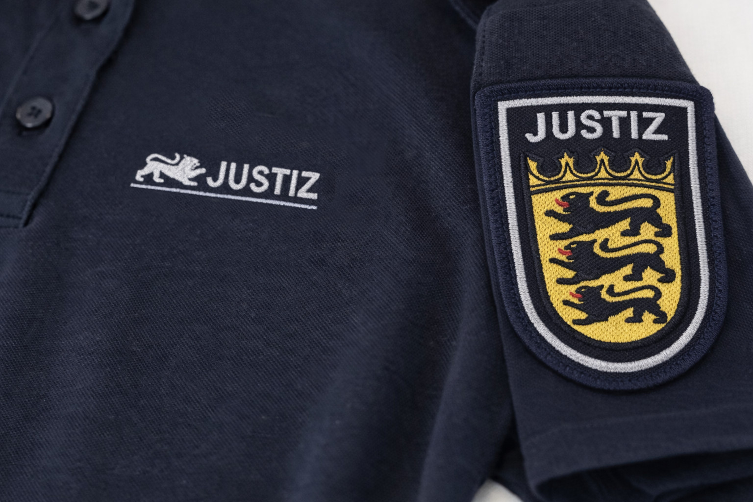 - Bestickung, linke Brust "JUSTIZ" - Signet B.-W.