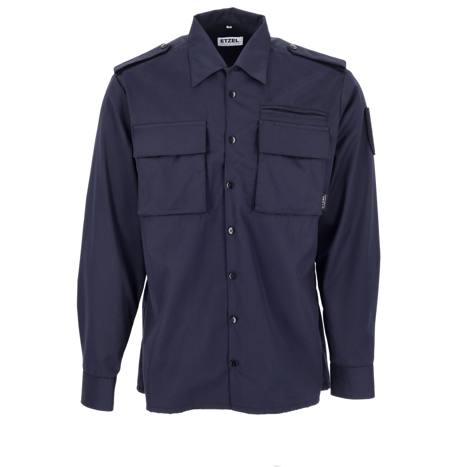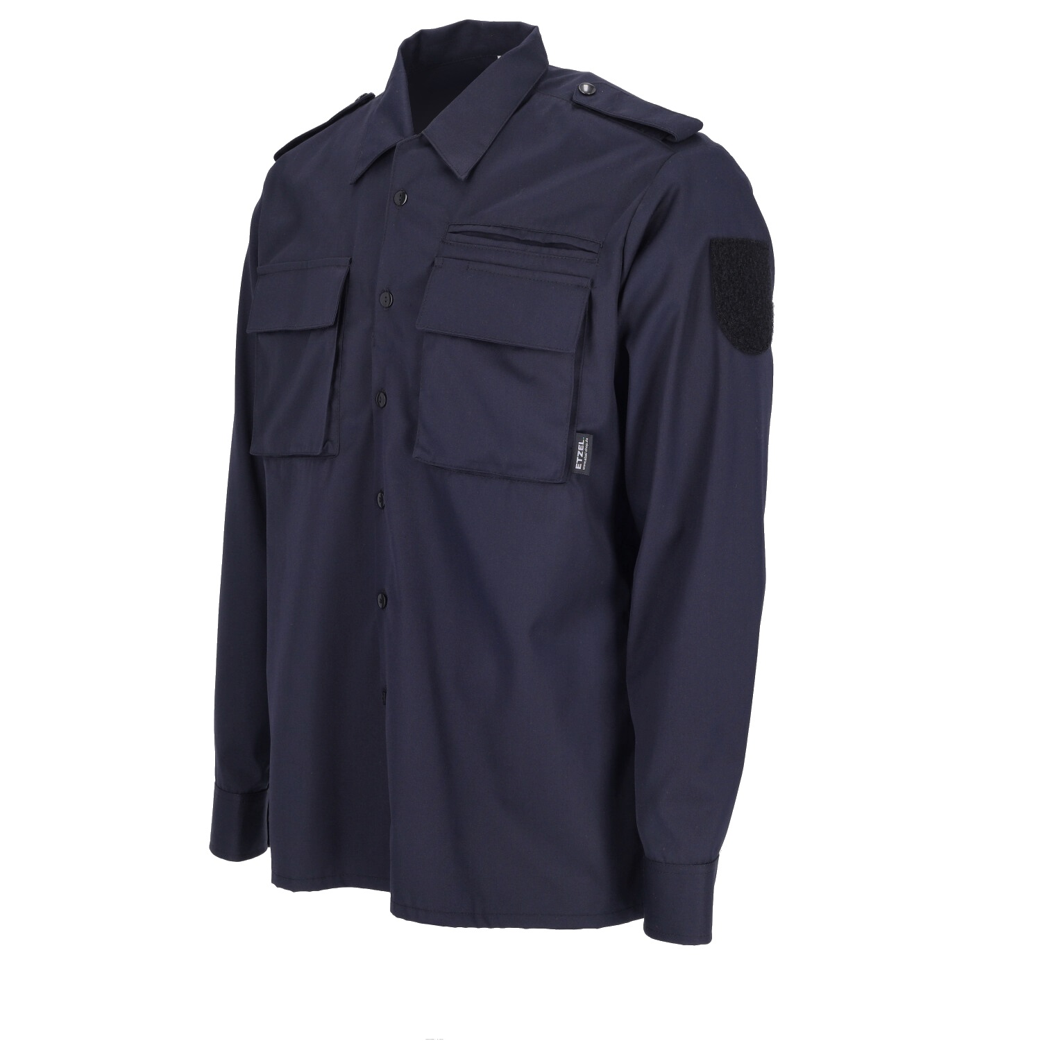 Extrem strapazierfähiges Uniform-Diensthemd aus Baumwollmischgewebe. Ausgestattet mit Tunneln für Dienstgradabzeichen - geeignet zur Anbringung von Schulterklappen (abnehmbar durch Druckknopf). Flauschvorbereitung für Hoheitsabzeichen links, 2 Brusttaschen mit Patte zum Kletten und verdeckten Brustfach. Brusttasche mit zusätzlicher Paspeltasche für Merkbuch, Bequemlichkeitsfalte im Rückenteil. Individuelle Bedruckung auf Brustpatte möglich.